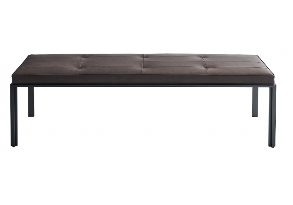 Anton designed by Vincent Van Duysen for Molteni&C is a bench made with pewter finish feet and base and upholstery in fabric or leather.