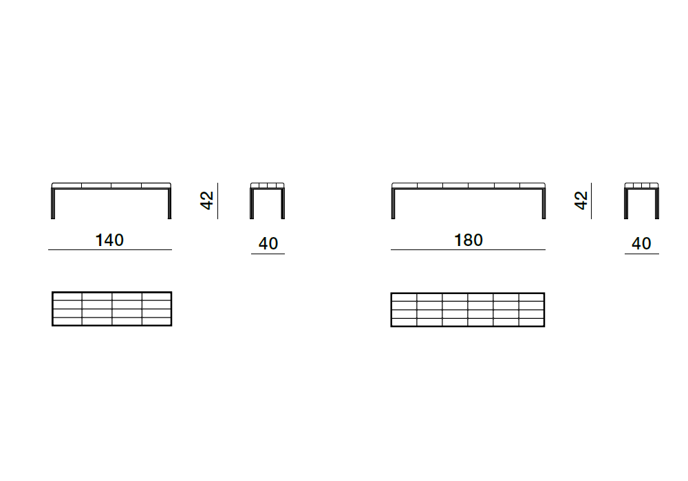 | Dimensions | 140 x 40 x H 42 cm; 180 x 40 x H 42 cm |