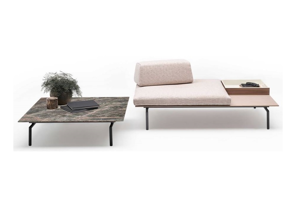 Sumo designed by Piero Lissoni for Living Divani is a bench with structure in poplar plywood and padding in differentiated density polyurethane foam. Upholstery in leather or fabric, fully removable. Containers made of MDF with sides only veneered in canaletto walnut; lacquered internal sides and bottom. Available in 2 sizes.