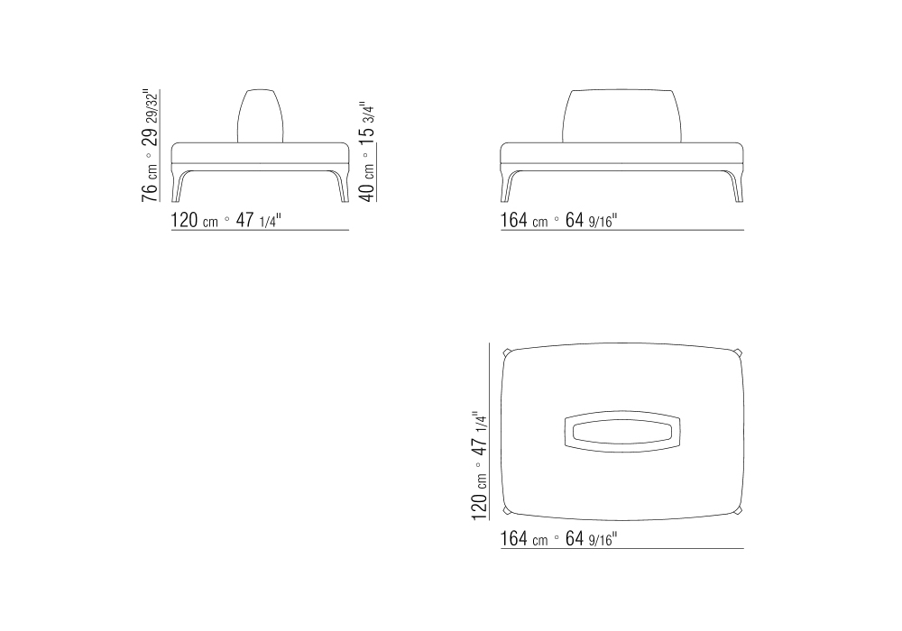 Dragonfly designed by Roberto Lazzeroni for Flexform is a bench composed of polyurethane padded solid wood structure and polyurethane and dacron padded plywood seat. The bench is available with fabric upholstery and piping of your choice or with leather upholstery and piping with the same leather.