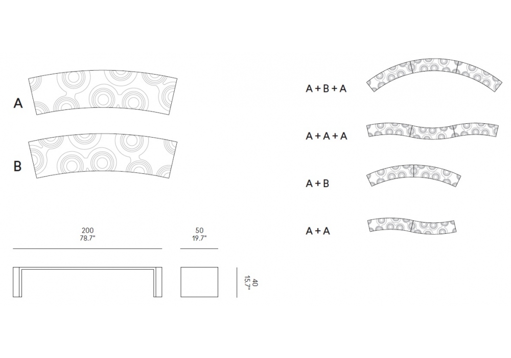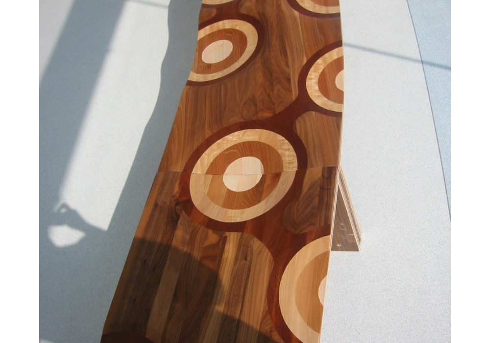 Ripples - Like a River designed by Toyo Ito for Casamania & Horm is a bench made with a special and exclusive plywood of five different types of wood (canaletto walnut, mahogany, cherry, oak and ash). Seat reinforced with a hidden metal bar. Modules A and B can be combined to create compositions.