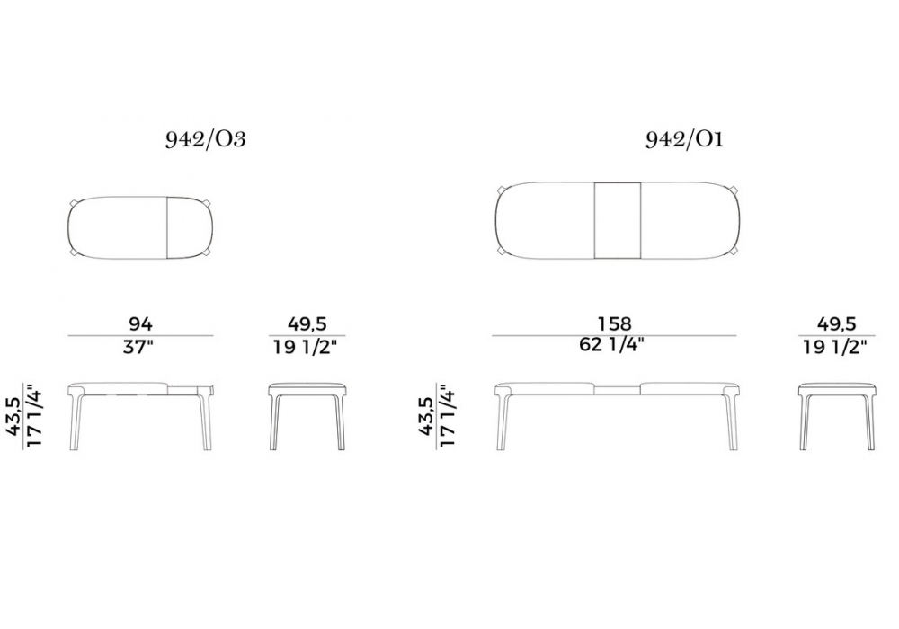 | Dimensions | 94 x 49,5 x H 43,5 cm; 158 x 49,5 x H 43,5 cm. |