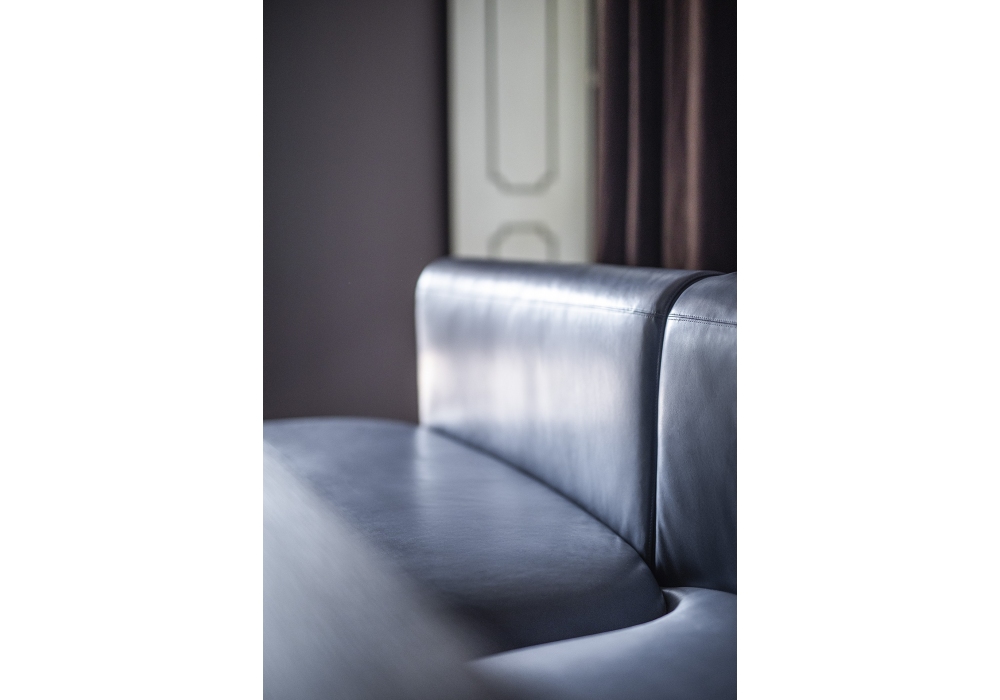 Clara designed by Christophe Delcourt for Baxter is a bench/modular bench with fir plywood frame. Differentiated density polyurethane foam filling with acrylic fibre cover. Springing with woven elastic straps of covered rubber. Available in soft leathers only.