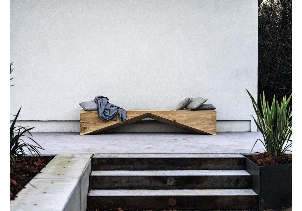 Bridge designed by C.R. & S. Riva1920 is a bench in solid scented cedar worked from a single block.