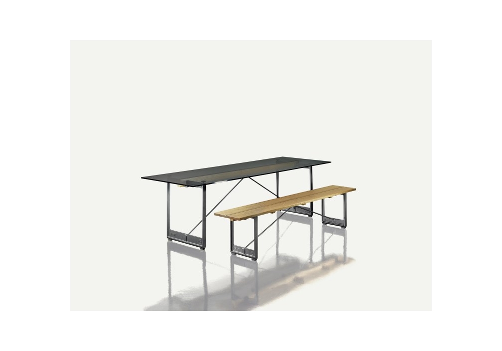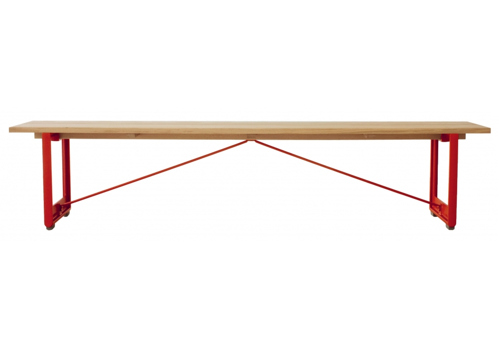 Brut designed by Konstantin Grcic for Magis is a bench with structure in painted cast iron, seat in solid natural oak. Available in different finishes and two sizes.
