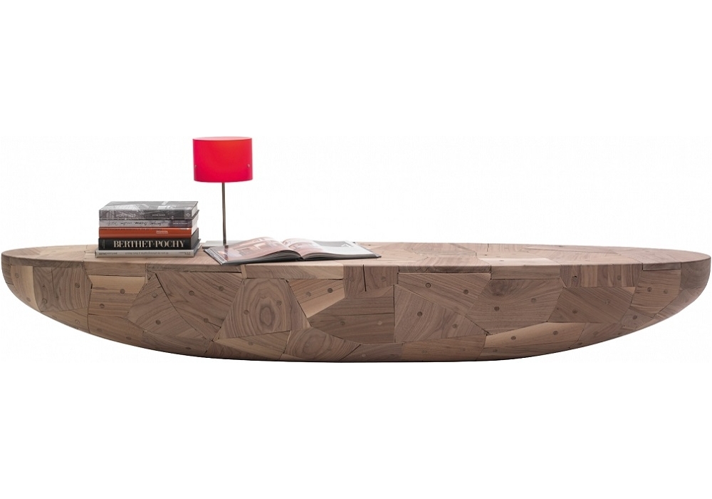 Poh (Patchwork oval hemisphere) designed by Raphael Navot for Cappellini is a bench obtained from the patchwork of solid wood pieces in natural American walnut.