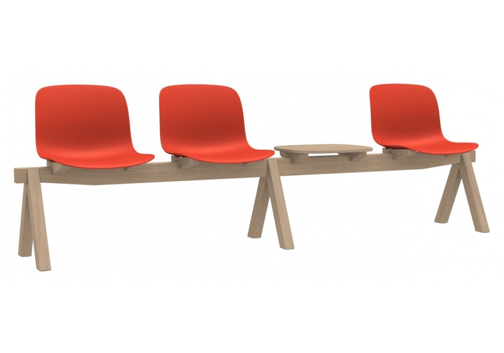 Troy designed by Marcel Wanders for Magis is a seating system with polypropylene seat and solid beech bar. Available in different finishes and compositions.