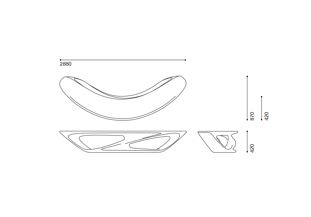 Drift designed by Amanda Levete is a bench made with sophisticated engineering software to sculpt the architectural form. Available in different finishes.