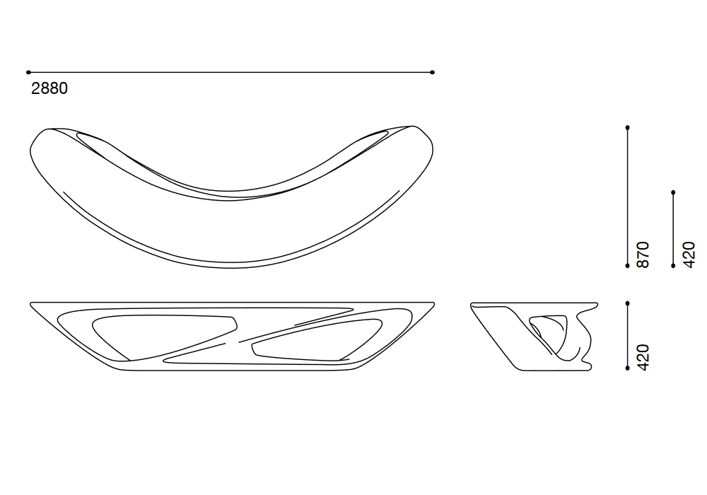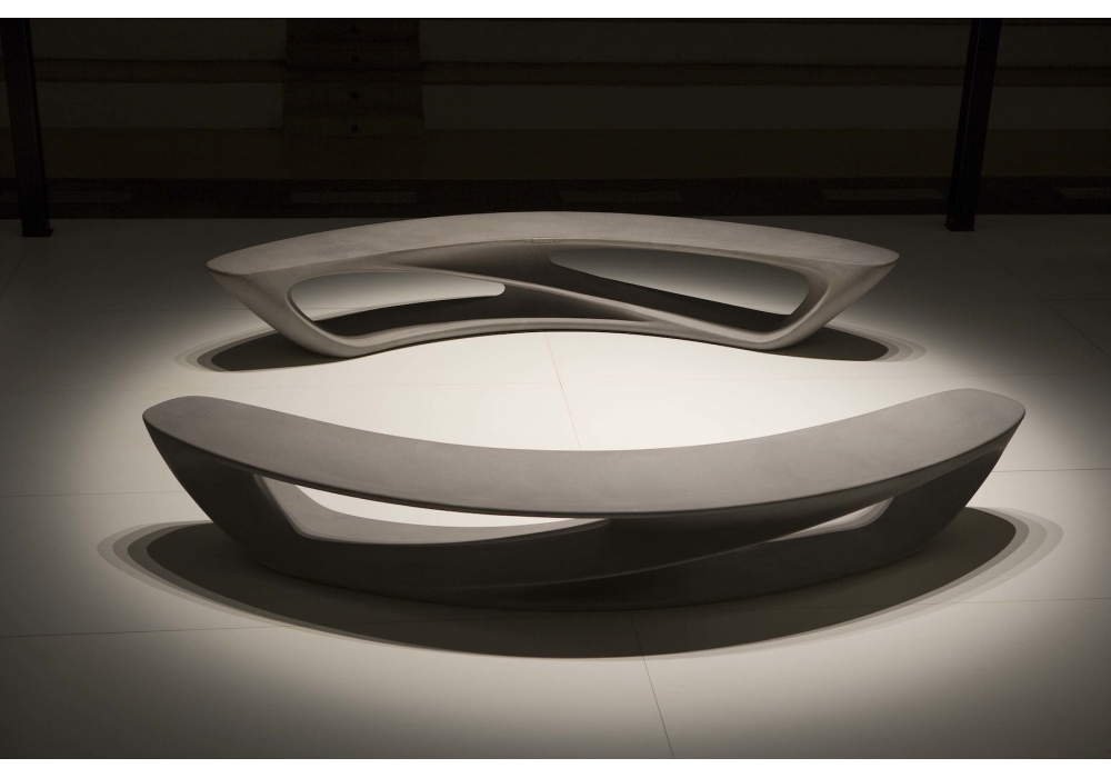 Drift Concrete designed by Amanda Levete is a bench made with sophisticated engineering software to sculpt the architectural form. Available in different finishes.