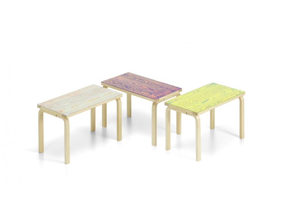 Bench 153 ColoRing designed by Alvar Aalto for Artek is a bench made with legs in natural lacquered solid birch and seat in pine and solid birch veneer with ColoRing decoration. Available in different finishes.