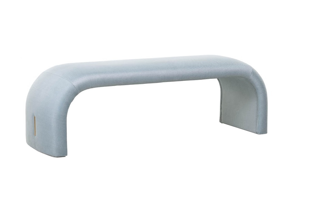 Eclipse designed by Andrea Bonini for Turri is a bench with structure in solid wood and plywood padded with polyurethane foam with non-removable cover in leather or fabric with metal inserts in a light gold finish.