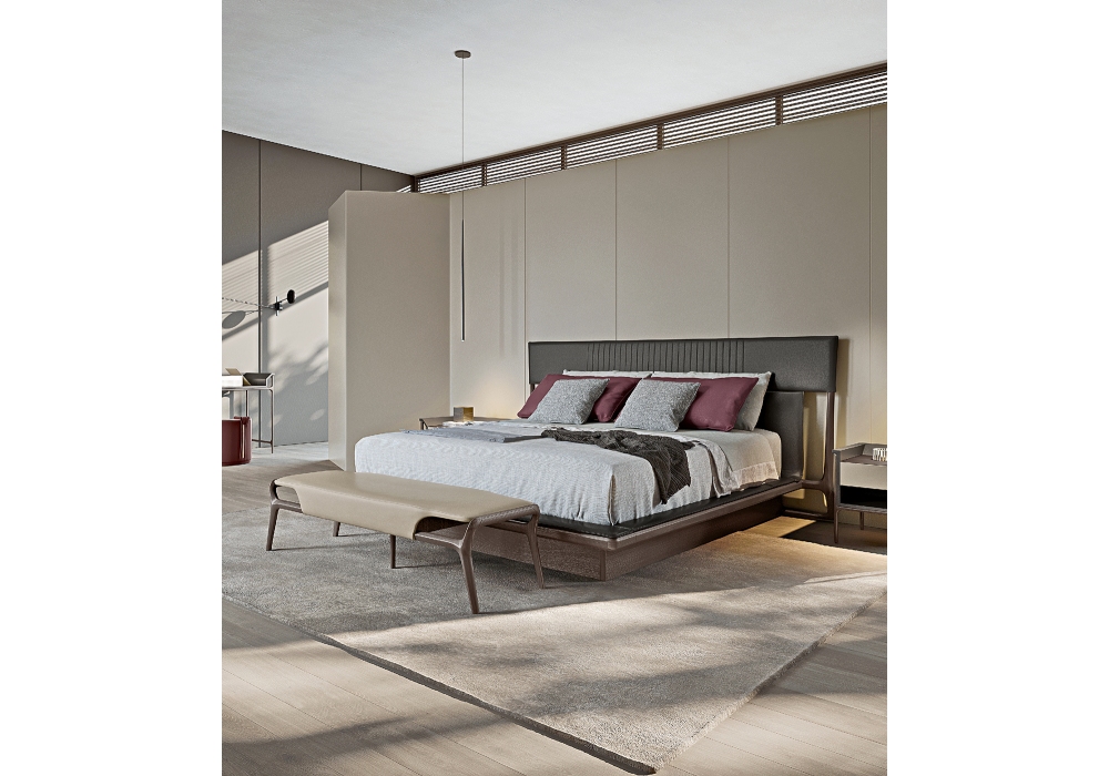 Vine designed by Frank Jiang for Turri is a bench with structure in plywood and solid walnut upholstered with polyurethane foam. Non-removable cover in different fabrics or leathers.