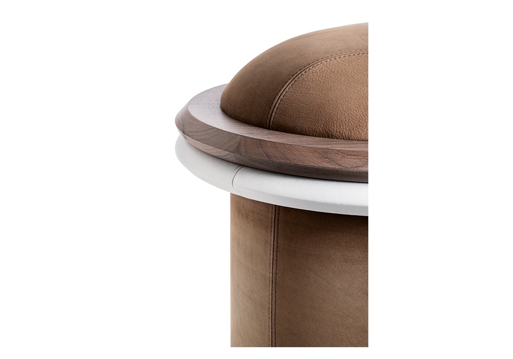 Liz-Bench designed by Silvia Musetti for Giorgetti is a bench made of Canaletto walnut with onyx insert, fabric or leather covering.