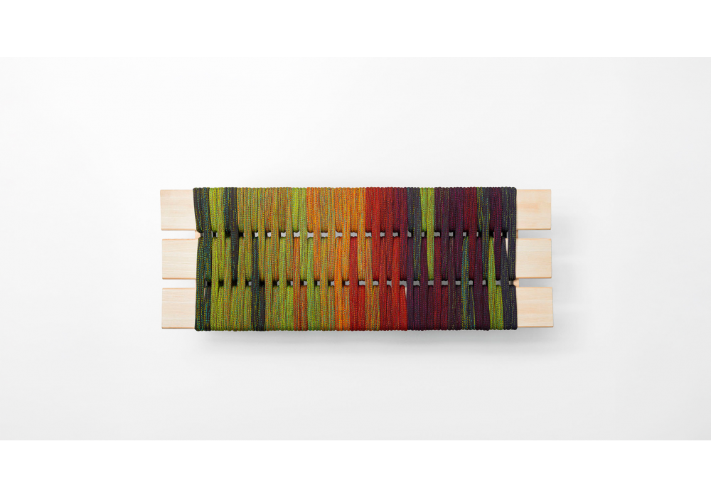 Naga designed by Atelier Oï for Paola Lenti is a bench with a structure in solid natural ash wood. Seat upholstery made with a sequence of mélange polyester mesh rings inserted on the structure to generate unpredictable chromatic effects.