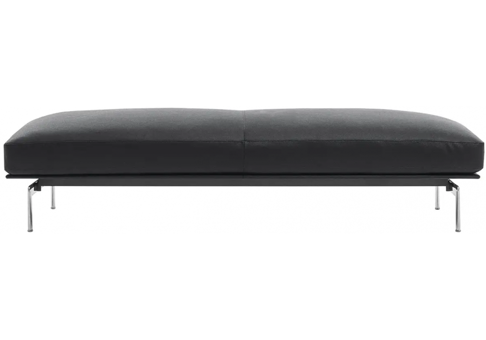 Diesis designed by Antonio Citterio and Paolo Nava for B&B Italia is a bench with a supporting structure in polished brushed or black chrome painted aluminum and a leather structure covering. Feet in matt brushed aluminum. Seat covering in different fabrics or leathers.