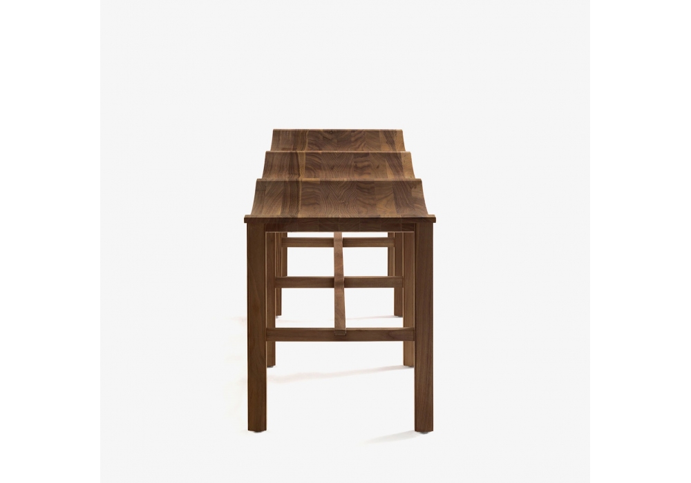 Piazza Scala designed by Michele De Lucchi for Riva 1920 is a bench entirely made of solid wood with glued boards, characterized by a single ergonomic wooden top that continues along the entire length of the seat and supported by square legs. Available in different dimensions.