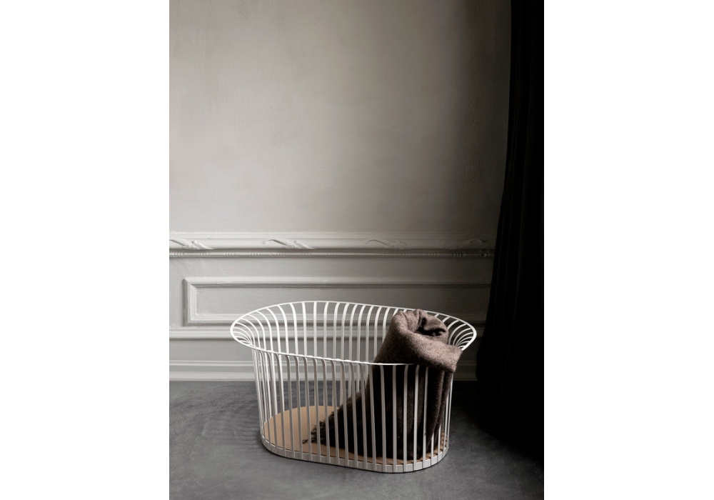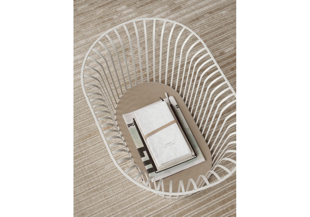 Ribbon designed by Norm Architects for Audo Copenhagen is a basket made of powder coated steel, bottom covered in leather.
