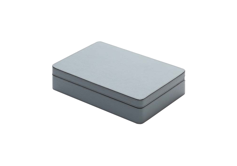 Domino Wooden Box designed by Giobagnara x Poltrona Frau. The domino tiles are made in walnut wood with fine leather inlays, and are contained inside a leather-covered walnut wood case. Entirely made in Pelle Frau®.