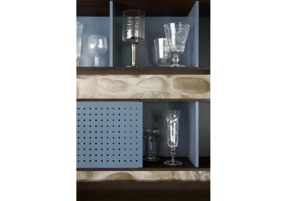 Arda designed by Alessio Bassan for Capodopera is a shelf made of MDF with a glossy or matt lacquered finish, or in veneered wood panels. Available in the version with or without matt lacquered door.