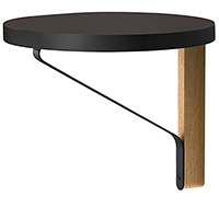 REB 007 Kaari Shelf designed by Ronan & Erwan Bouroullec for Artek, is a wall shelf round. Top with linoleum surface (thickness approx. 24 mm) and ABS edge. Wall bracket solid natural oak or black stained with a protective varnish.