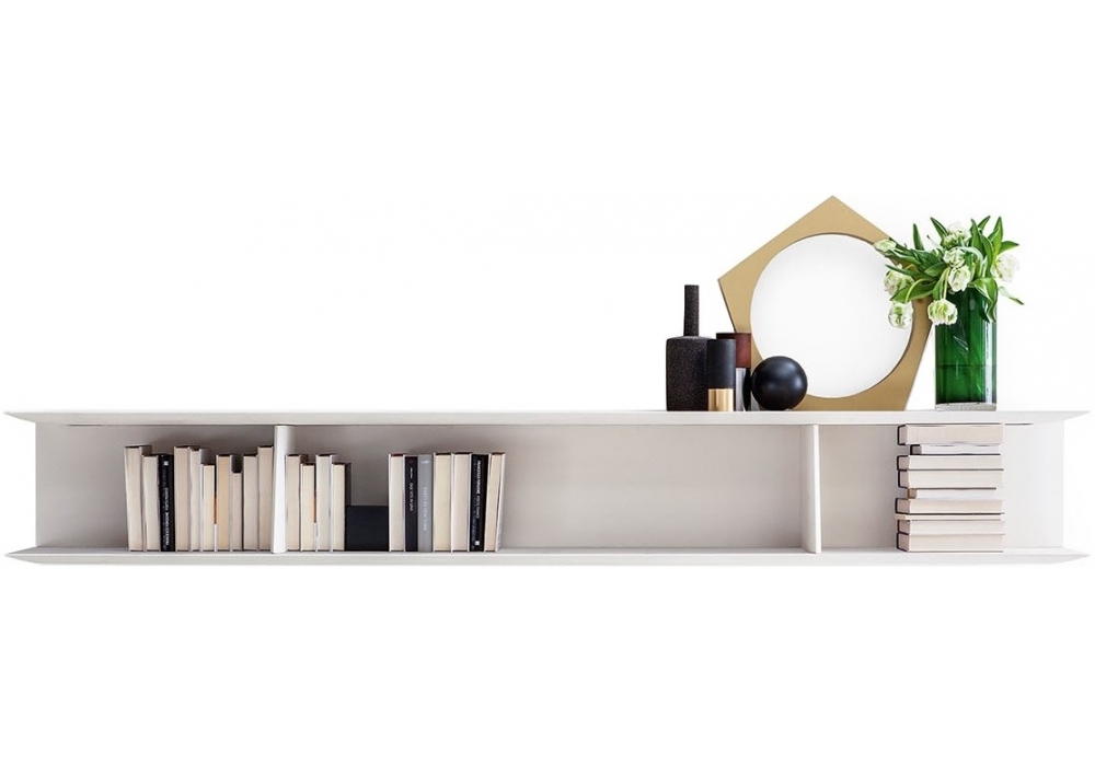 D.355.1 - D.355.2 designed by Gio Ponti for Molteni&C is a suspended bookcase made of shaped plywood covered in elm, partly with natural transparent finish, partly hand painted in white. Available in different dimenions.