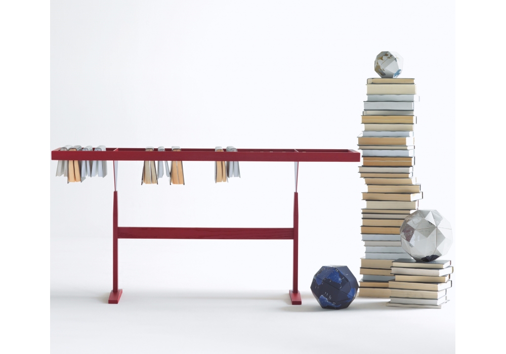 Booken designed by Raw Edges for Lema is a bookshelf composed of elements made from lacquered ashwood.