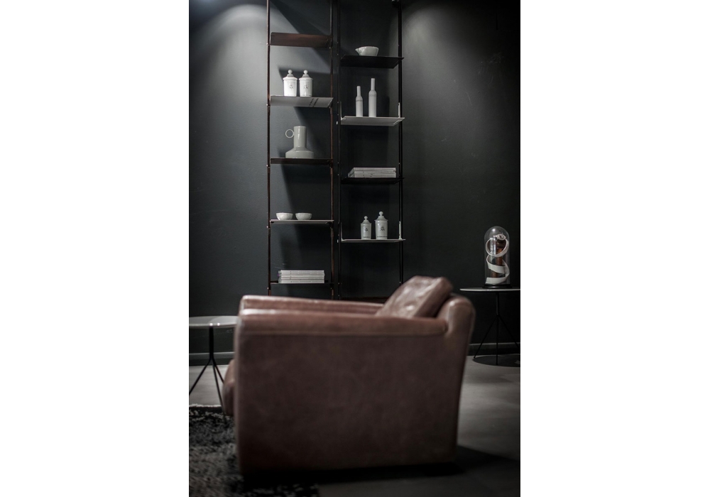 Fly designed by Draga & Aurel for Baxter is a beautiful bookcase with iron structure and a particular rust finishing. Five total shelves, two of which white enamelled and silk-screened by hand in line with the artist's creativity; each item will therefore be different and unique.