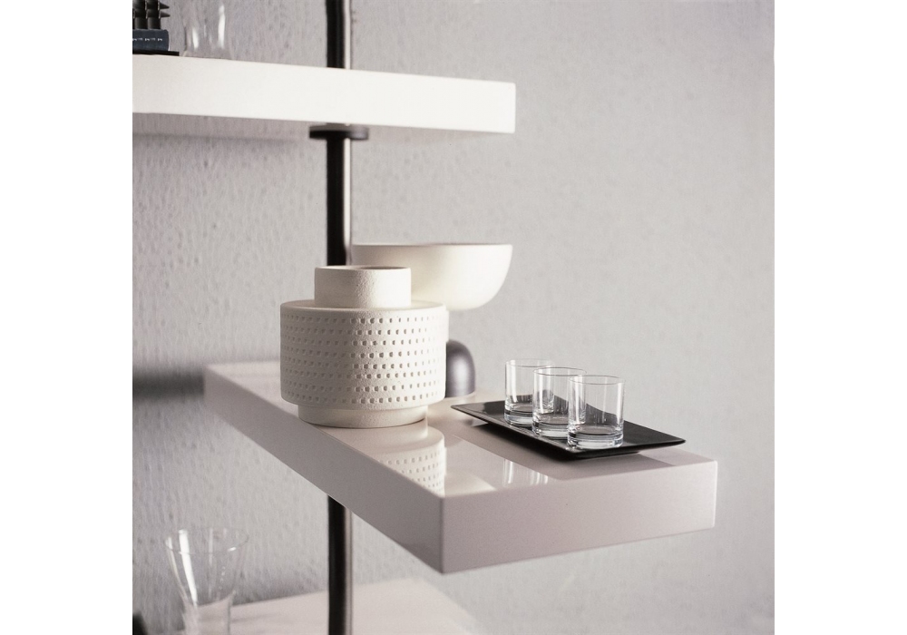 Domino Expo designed by T. Colzani for Porada is a modular bookshelf with metal structure and shelves in canaletta walnut, matt closed pore lacquer. Available in 2 versions: fixed to the wall or forced between floor and ceiling.