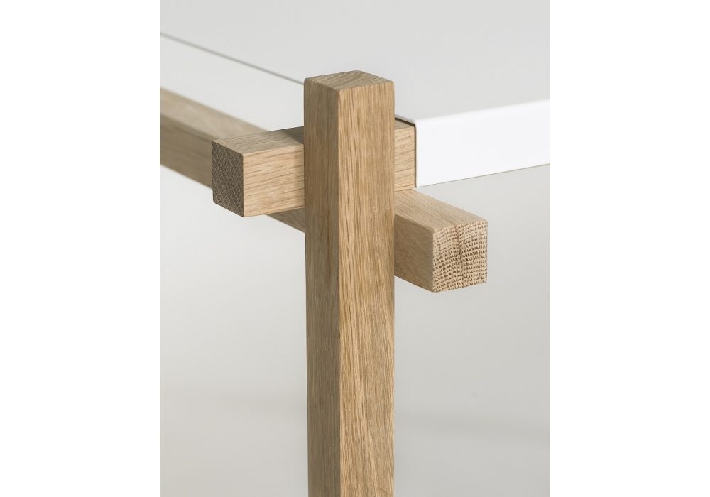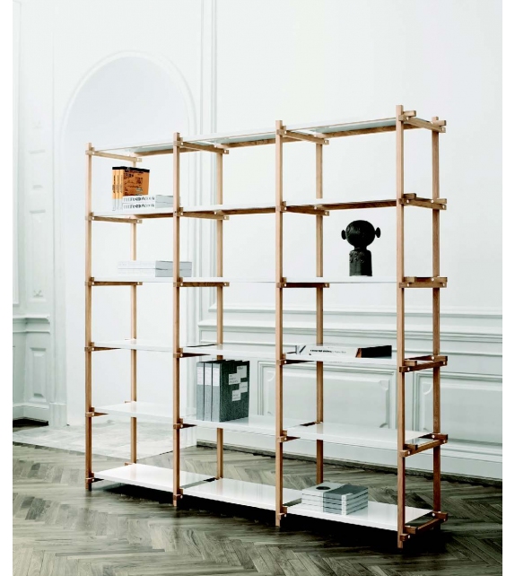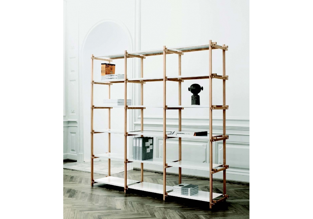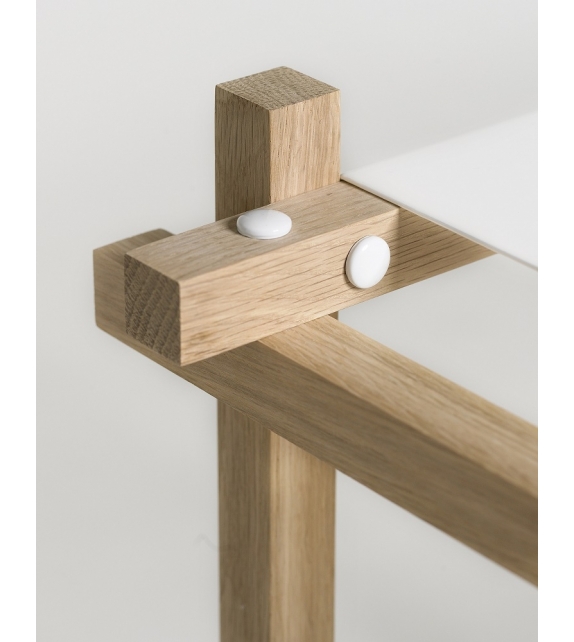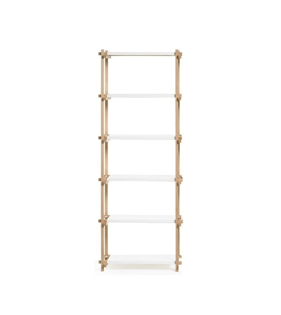 Woody High produced and designed by Hay is a shelving system with structure in solid oak with shelves in white powder coated steel. Available in different dimensions.
