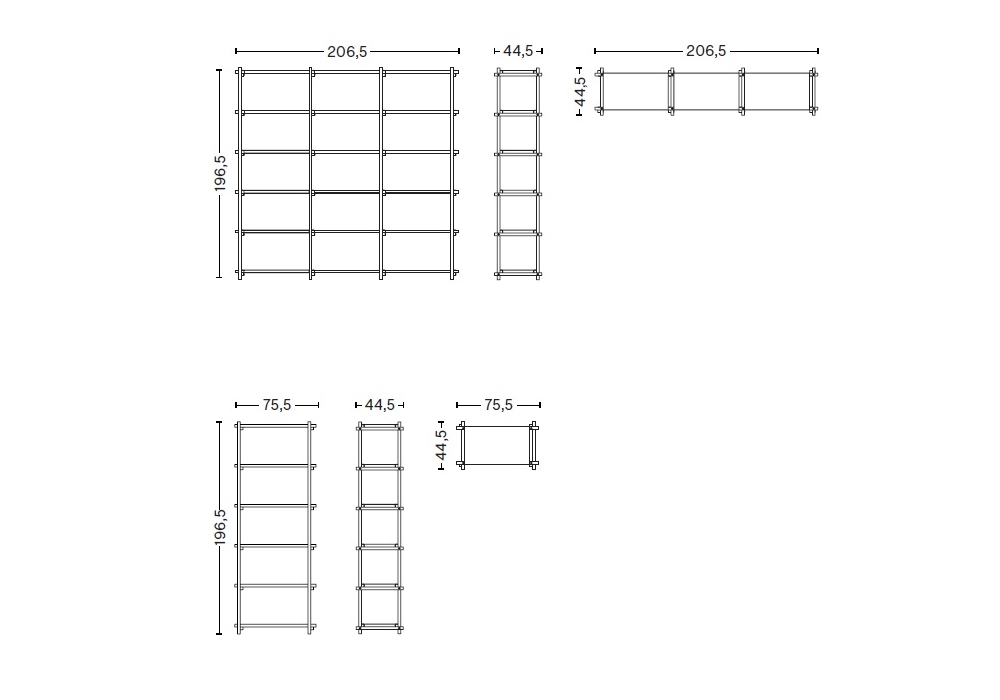 | Dimensions | 75.5 x 44.5 x H 196.5 cm; 206.5 x 44.5 x H 196.5 cm. |