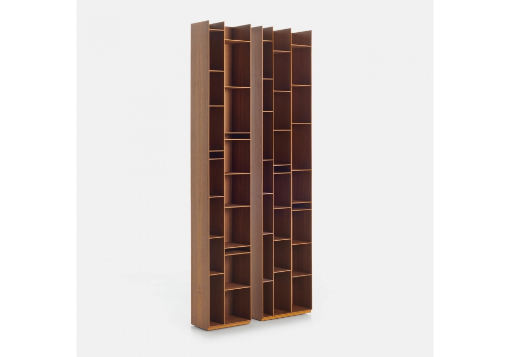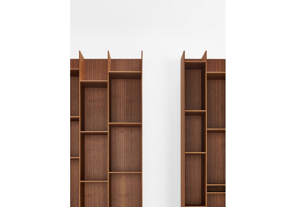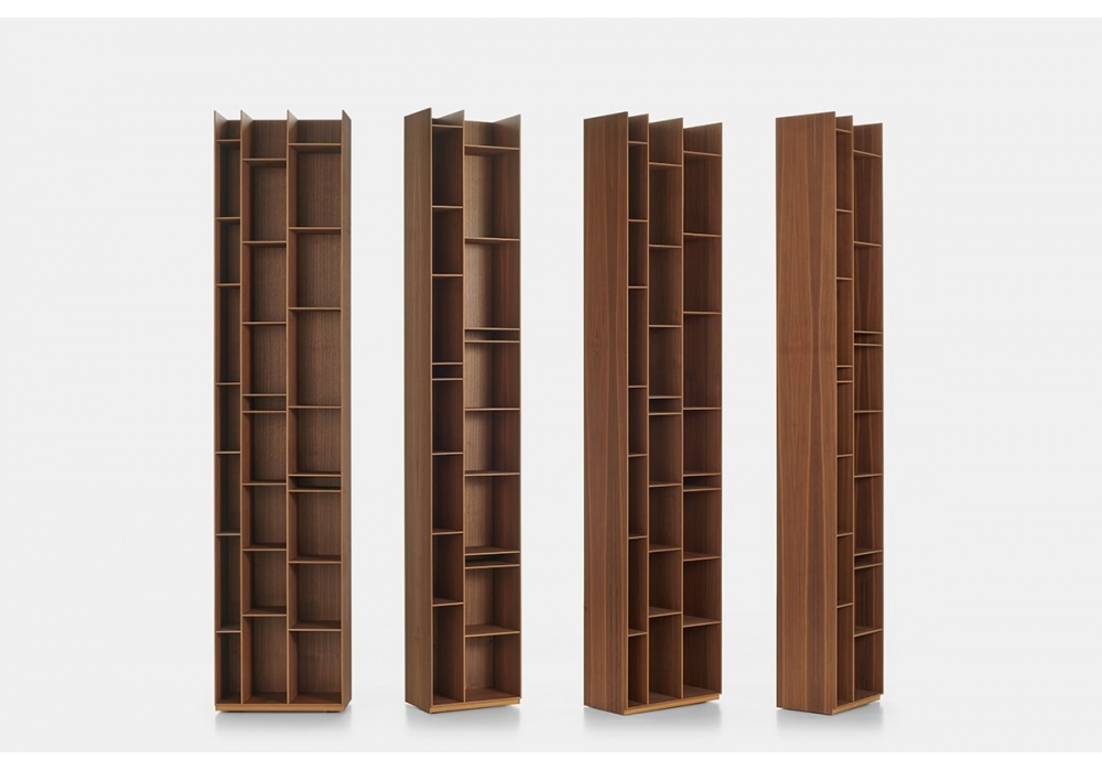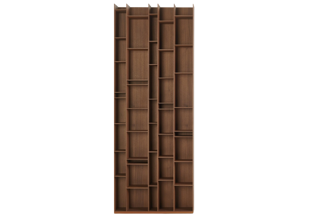 Random Wood designed by Neuland Industriedesign for MDF Italia is a bookcase made with medium density wood fiber panels in canaletto walnut finish. Available in various sizes.