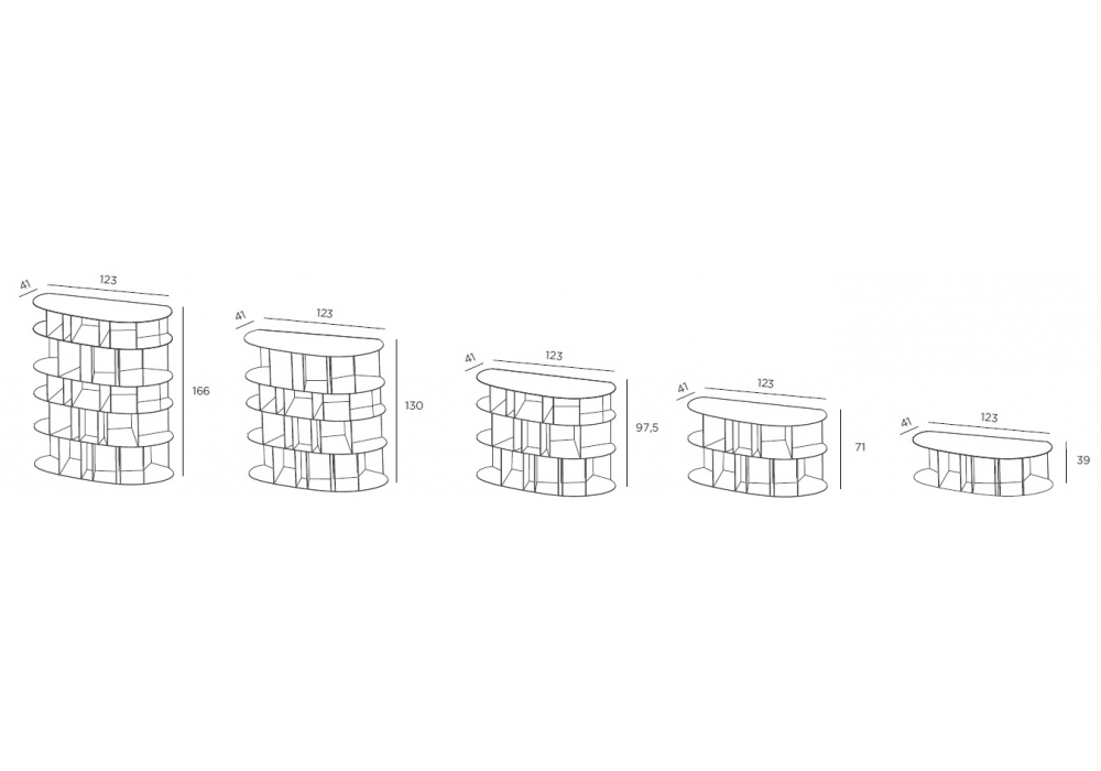 | Dimensions | • 123 x 41 x H 39 cm; • 123 x 41 x H 71 cm; • 123 x 41 x H 97.5 cm; • 123 x 41 x H 130 cm; • 123 x 41 x H 166 cm |