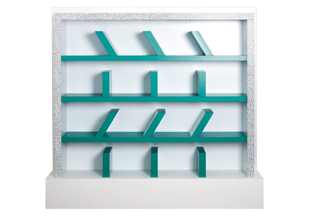 Suvretta designed by Ettore Sottsass for Memphis Milano is a bookcase made of plastic laminate.
