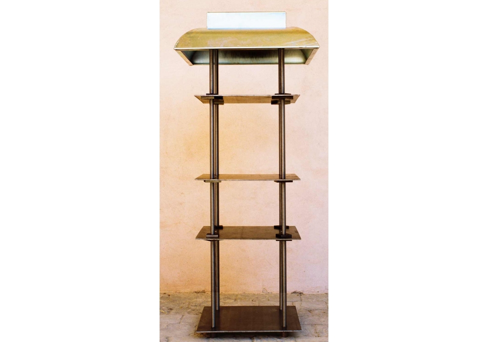 Cappello designed by Susana Solano for Memphis Milano is a bookcase made of iron with movable shelves. This work is made in a limited edition of 25 copies.