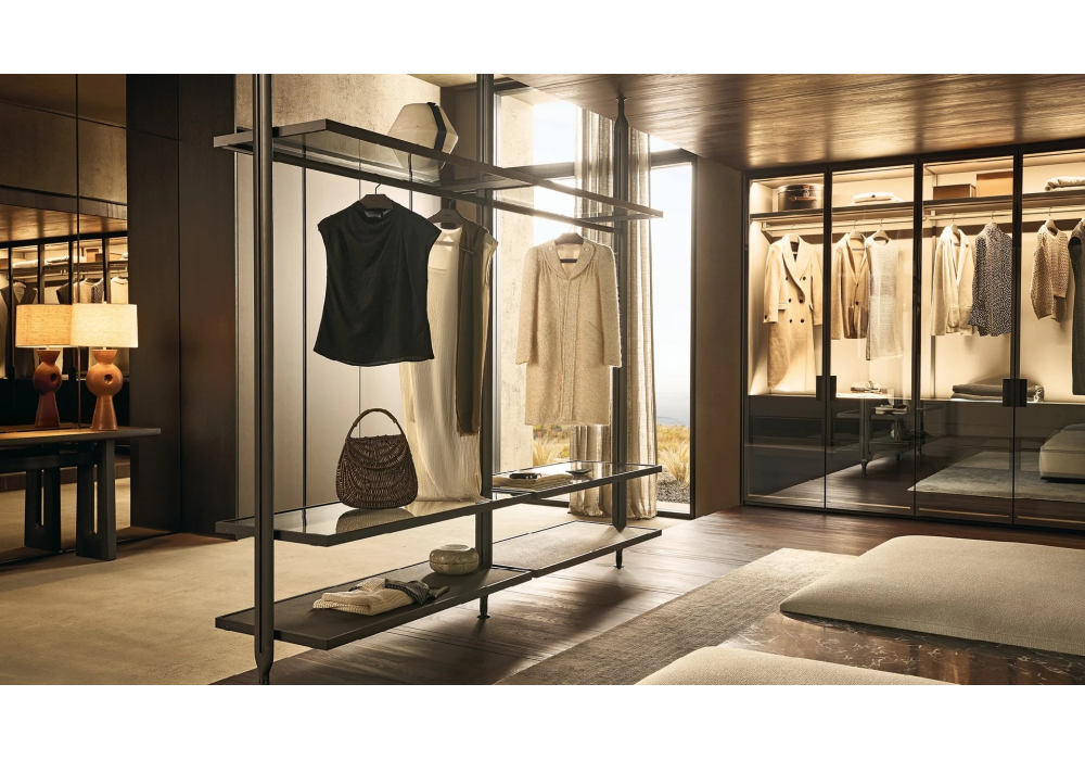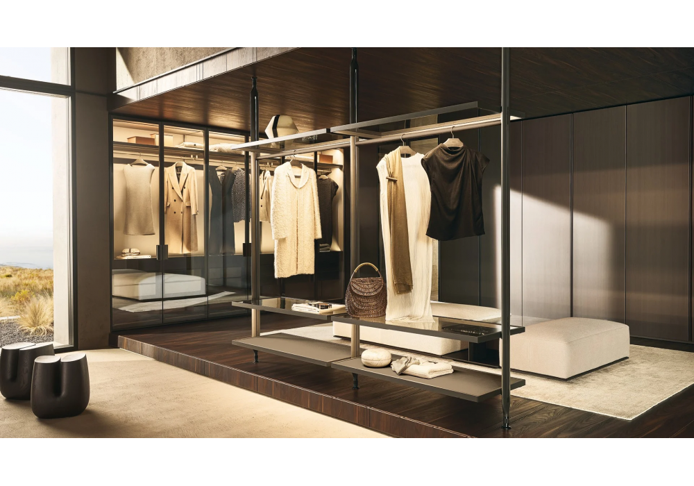Lexington designed by Jean-Marie Massaud and R&D Poliform is a modular system that allows various configuration possibilities. It consists a characteristic frame onto which shelves, drawers and other elements. It has two available configurations – wall-mounted and floor-to-ceiling, which also gives the option of designing two-sided compositions, finished on both front and back.