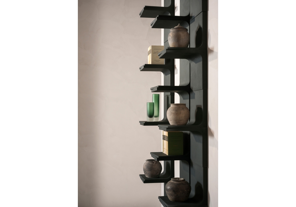 Hugo designed by Draga & Aurel for Baxter is a modular wall bookshelf made of anthracite gray cement agglomerate. Available in different dimensions.