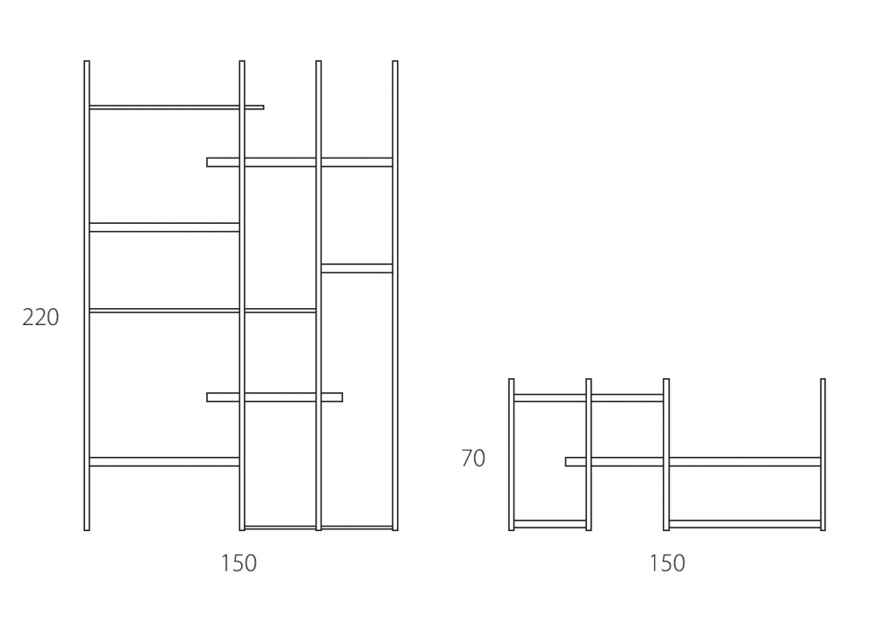 | Dimensions | 150 x 40 x H 220 cm; 150 x 40 x H 70 cm. |