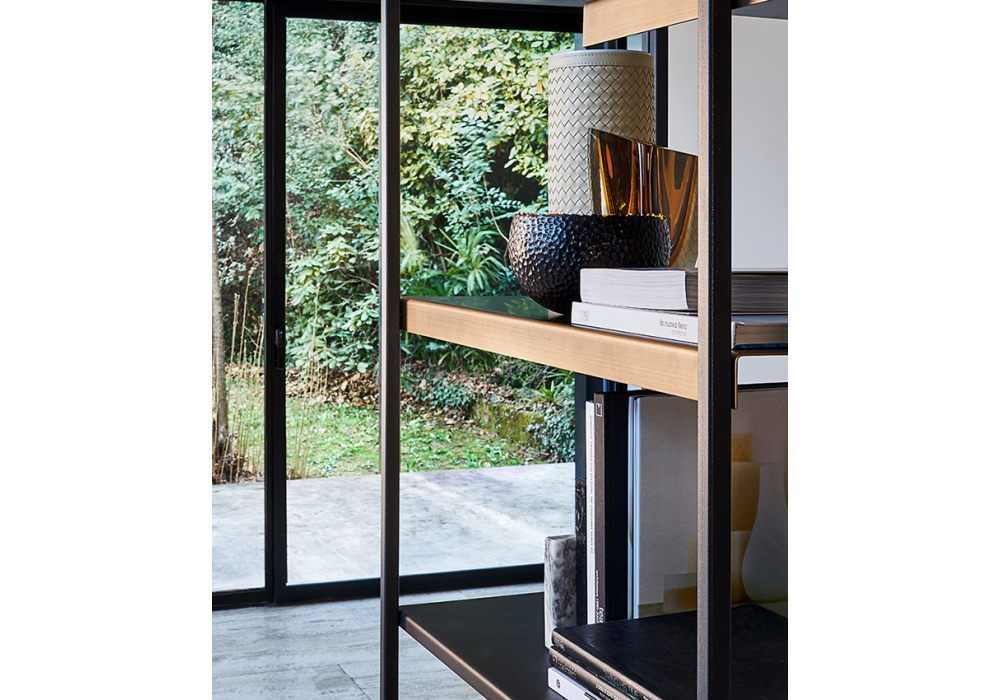 Freewall designed by Riflessi is a bookshelf made with a graphite painted metal structure. Shelves in graphite painted steel or in hand-brushed brass. Available in 2 dimensions.