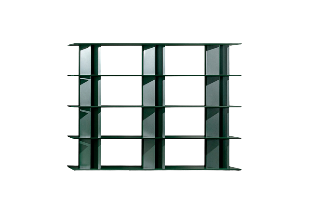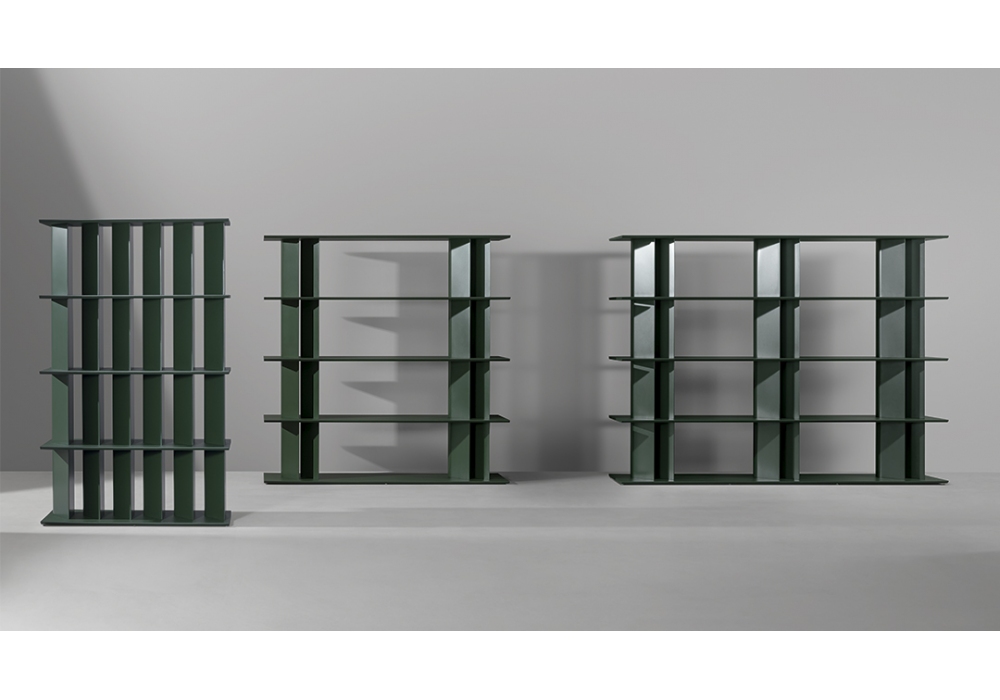 Dogma designed by Alain Gilles for Bonaldo is a bookcase available in 3 sizes. The shelves are made of veneered wood and the uprights are made of metal, in different colors.