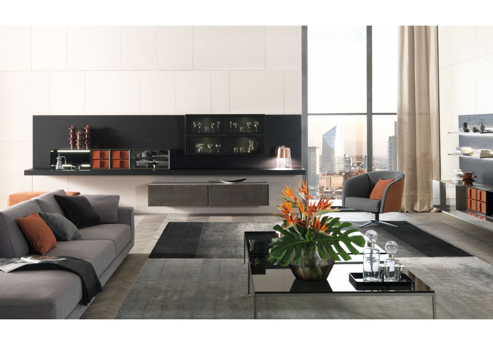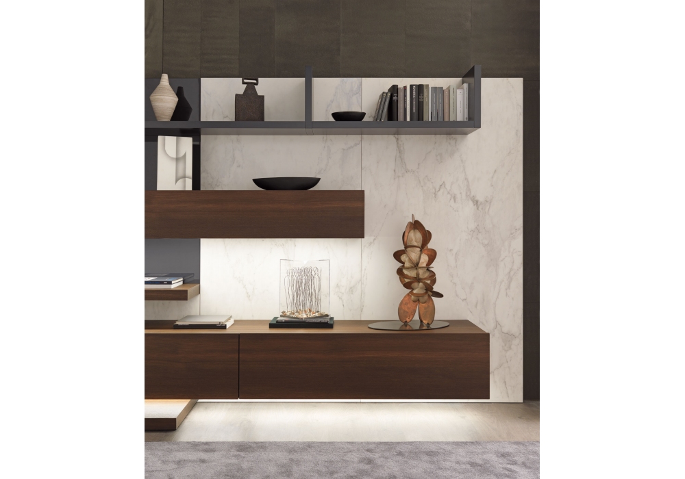 Tao designed by Mauro Lipparini for MisuraEmme is an open modular system characterized by compositional precision and meticulous attention to detail. The result is a linear design that stands out for the skilful use of different materials, which combine in a harmonious and original way. The search for aesthetic perfection is accompanied by the utmost attention to functionality, which makes Tao solutions suitable for the needs of an attentive and demanding public. Tao compositional solutions are distinguished by the skilful use of finishes such as matt and glossy lacquer, wood, melamine, glass, eco-leather and technomarble.