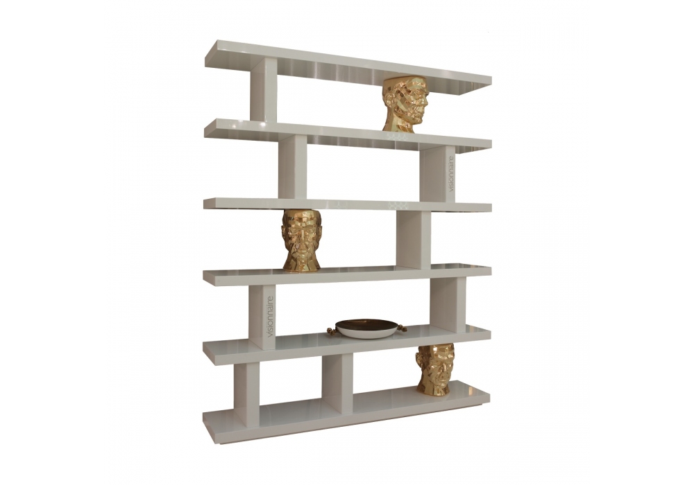 Forma Mentis designed by Simone Micheli for Visionnaire is a structured bookcase in licked wood with head-shaped sculptures in gold-painted ceramic. Forma Mentis is available in different models and lacquered finishes.