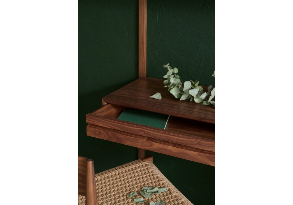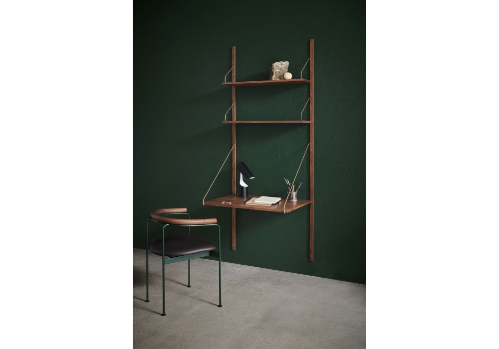 Royal System designed by Poul Cadovius for Dk3 is a modular system made of MDF and solid wood, hangers and shelf supports in stainless steel or brass. Available in different finishes and multiple configurations.