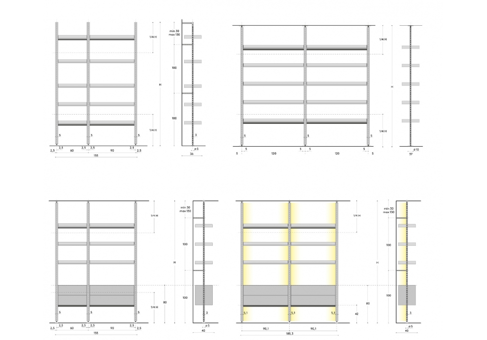 | Dimensions | 155 x 36 x H 230/330 cm; 240 x 37 x H 230/330 cm. |