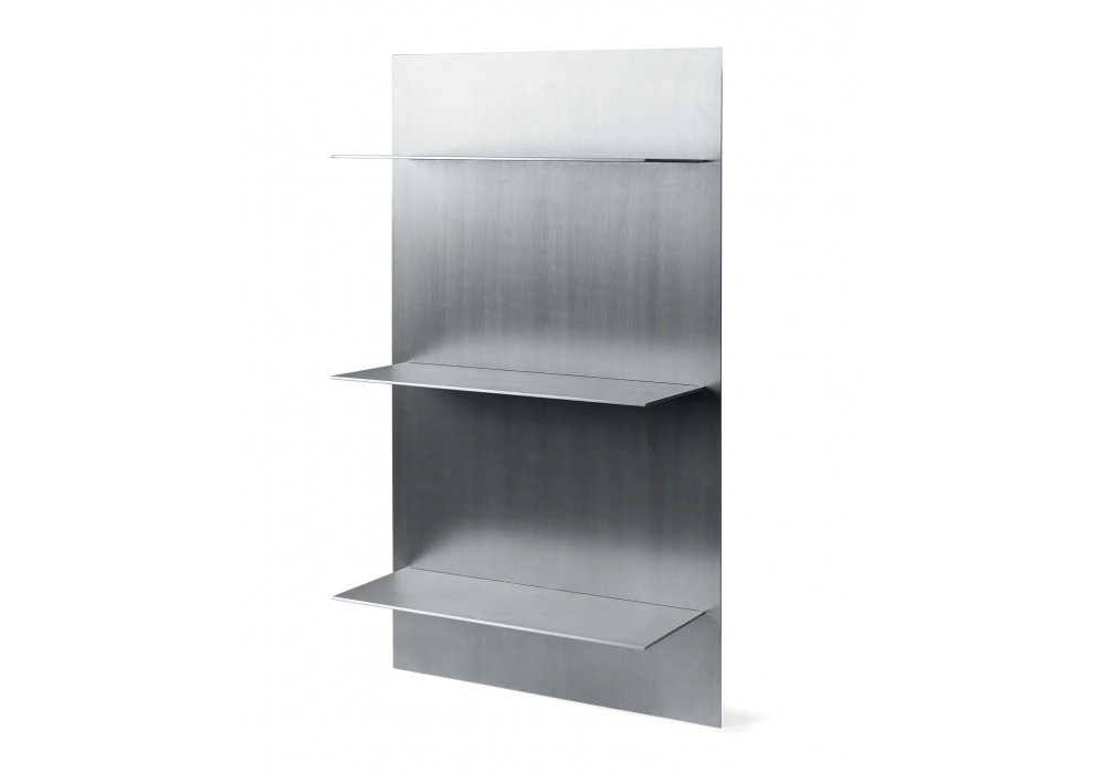 Lager Wall Shelf designed by Ferm Living is a shelving system made of aluminium, which referencing industrial and brutalist aesthetics.