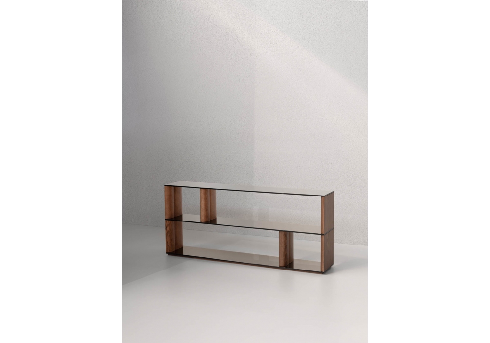 Pages designed by Studio Omi Tahara for Potocco is a bookcase made entirely of ash wood with top in mirrored glass. Available in different finishes.