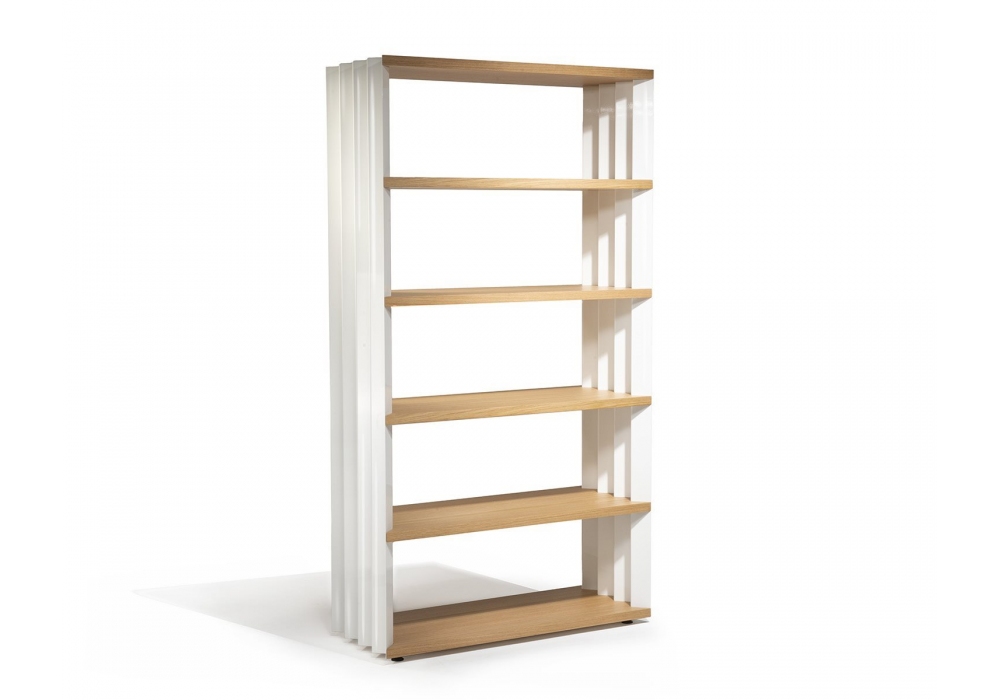 707 Z24 Books designed by Muller Van Severen for Zanotta is a bookshelf with a glossy painted steel structure. Shelves in MDF veneered in natural painted oak. The tall version bookcases, if placed side by side, can be connected using a joint provided.