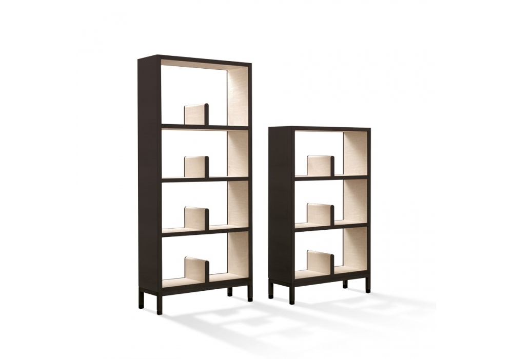 Nea designed by Chi Wing Lo for Giorgetti is a bookcase with structure in poplar plywood. The solid wood on the edges and the veneer on the external parts are in canaletto walnut, available in different finishes. On the inside, the veneer is Sycomore frisè dyed white for both versions. The base is in solid canaletto walnut with bronzed metal tips and is adjustable for leveling. The bookcase is available in different sizes and it is possible to add a case in solid canaletto walnut, with a white-stained Sycomore frisè top.