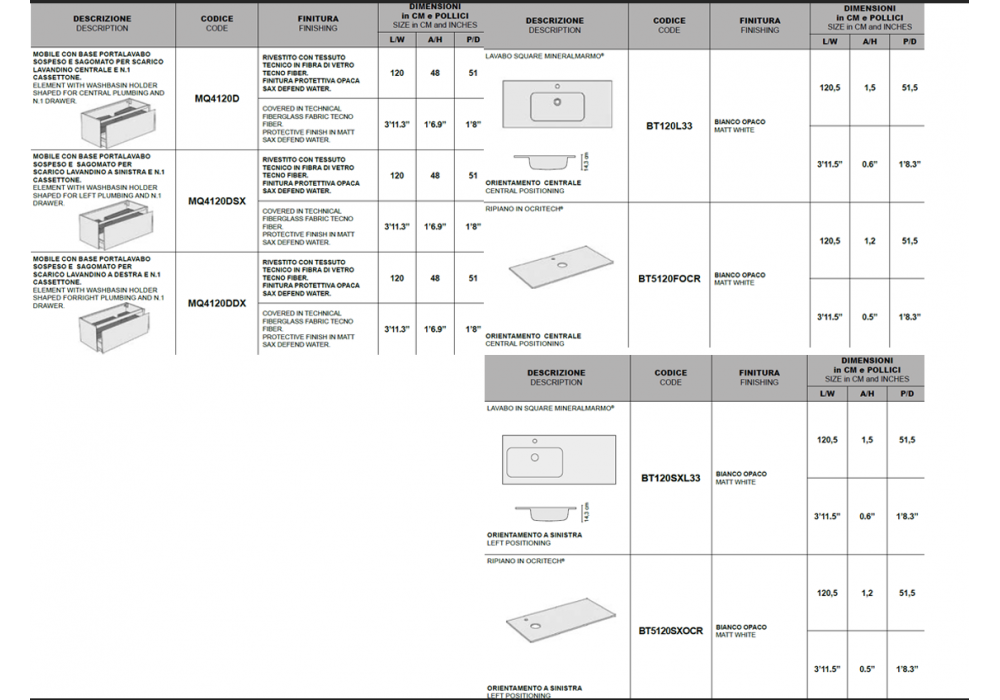 Brida designed by Studio Debonademeo for Momenti is a bathroom cabinet with structure made of MDF panels. Matt lacquered interior in Traffic White. Covered with TECNO FIBER Technical Fiberglass Upholstery Fabric. SAX DEFEND WATER protective matte finish. Mineralmarmo® top with integrated washbasin, matt finish, with right or left orientation. Available in different sizes and finishes.