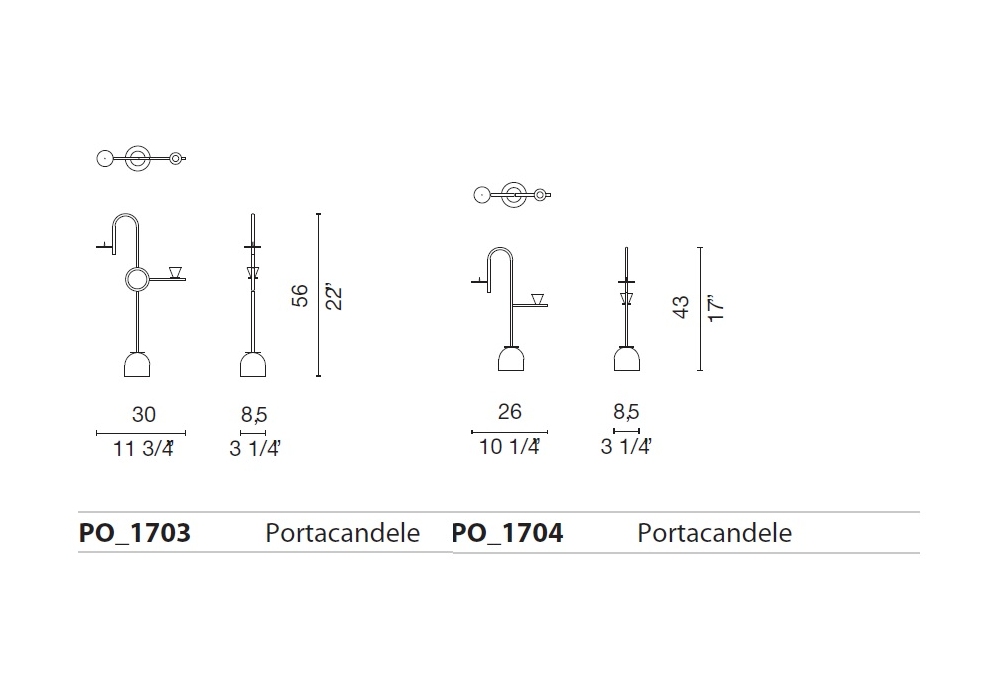 | Dimensions | 30 x 8,5 x H 56 cm (PO_1703); 26 x 8,5 x H 43 cm (PO_1704). |
