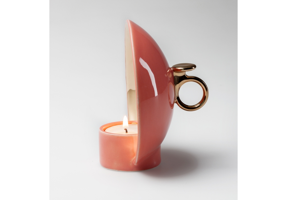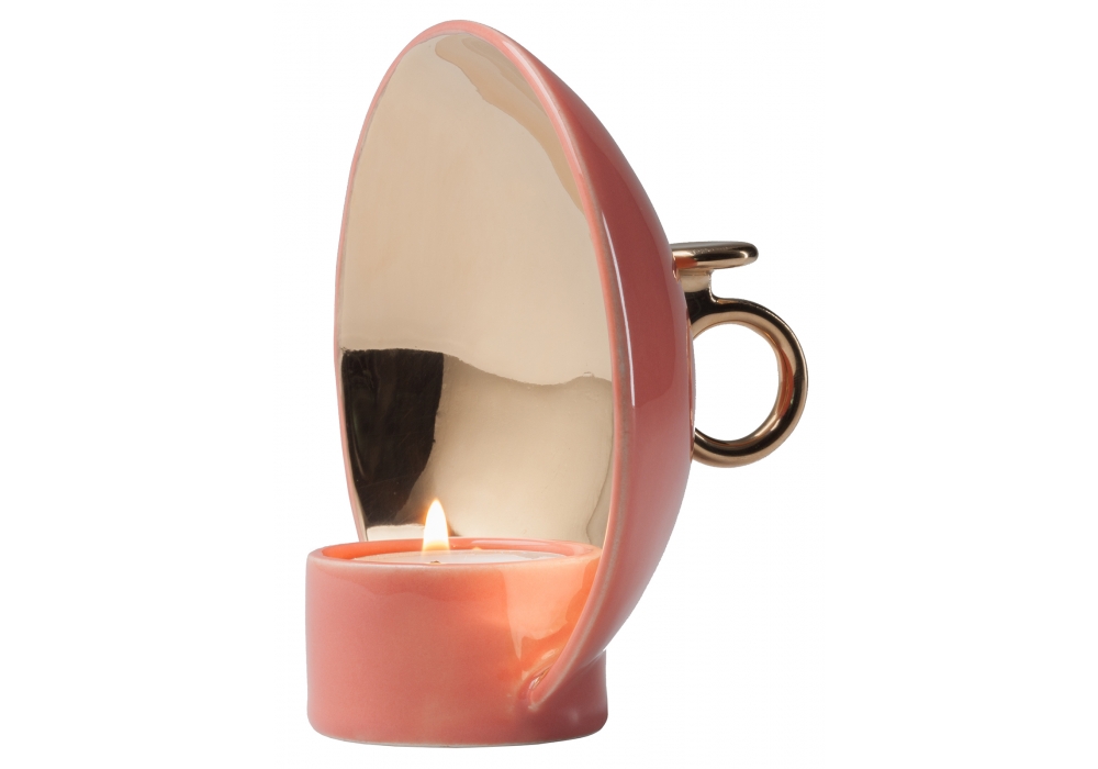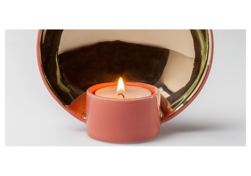 Lume designed by Alessandro Zambelli for Bosa is a candle holder in ceramic and details in glossy pink gold, with an original design that allows you to amplify the light of your candles. It's part of the Non ti scordar di me collection that includes magical, poetic, allusive objects that operates in our consciousness becoming symbols for special occasions. Lume is available in different finishes.